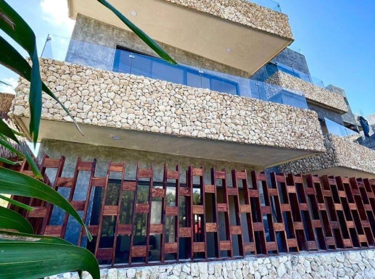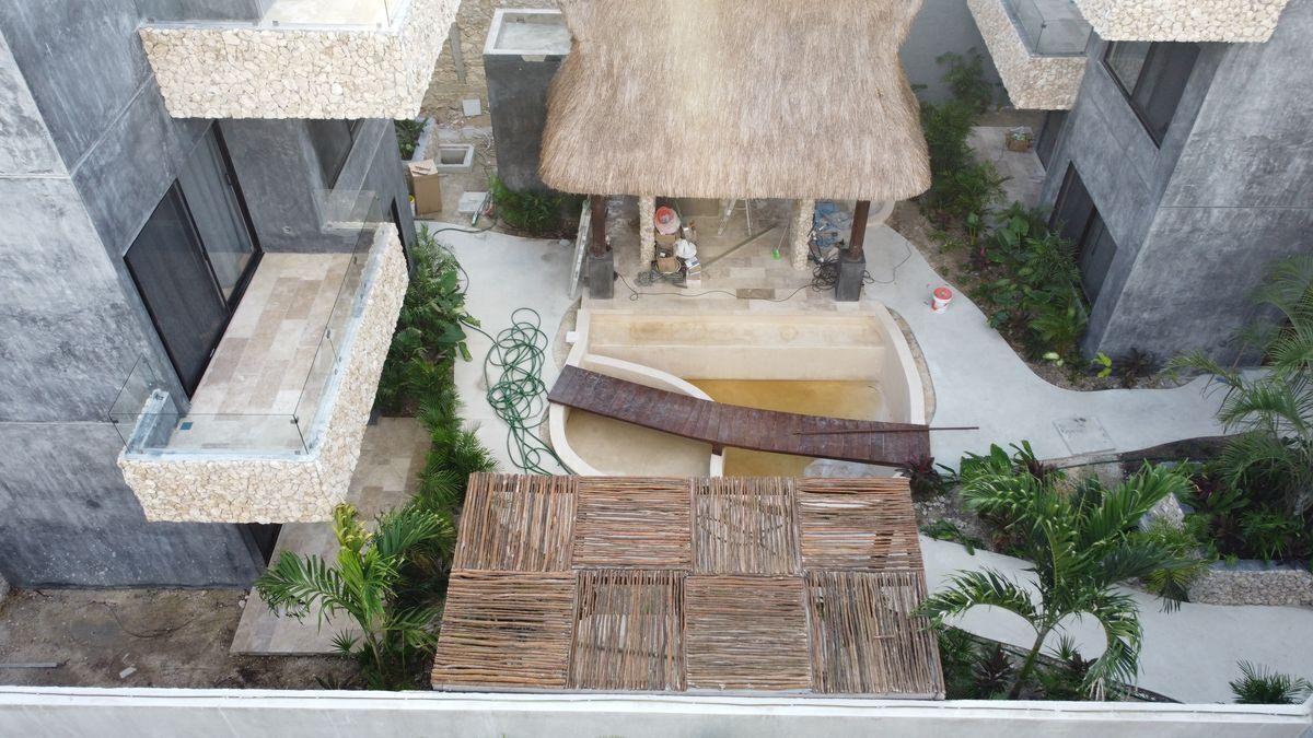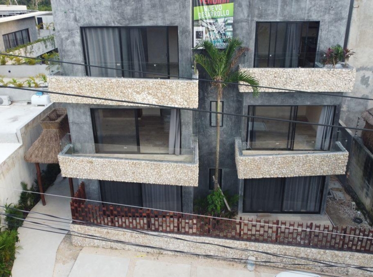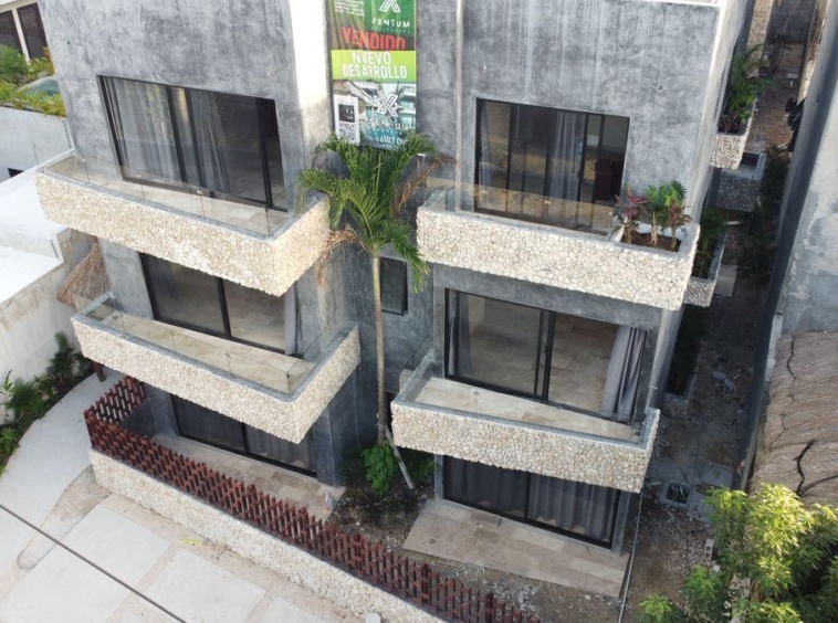 XENTUM Residences ideal para renta vacacional, alberca, palapa, elegante diseño , ubicado en primer piso con doble balcón.
