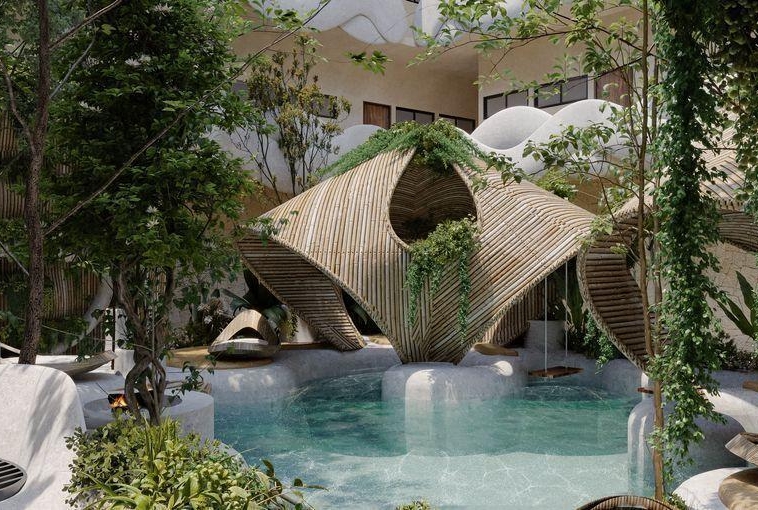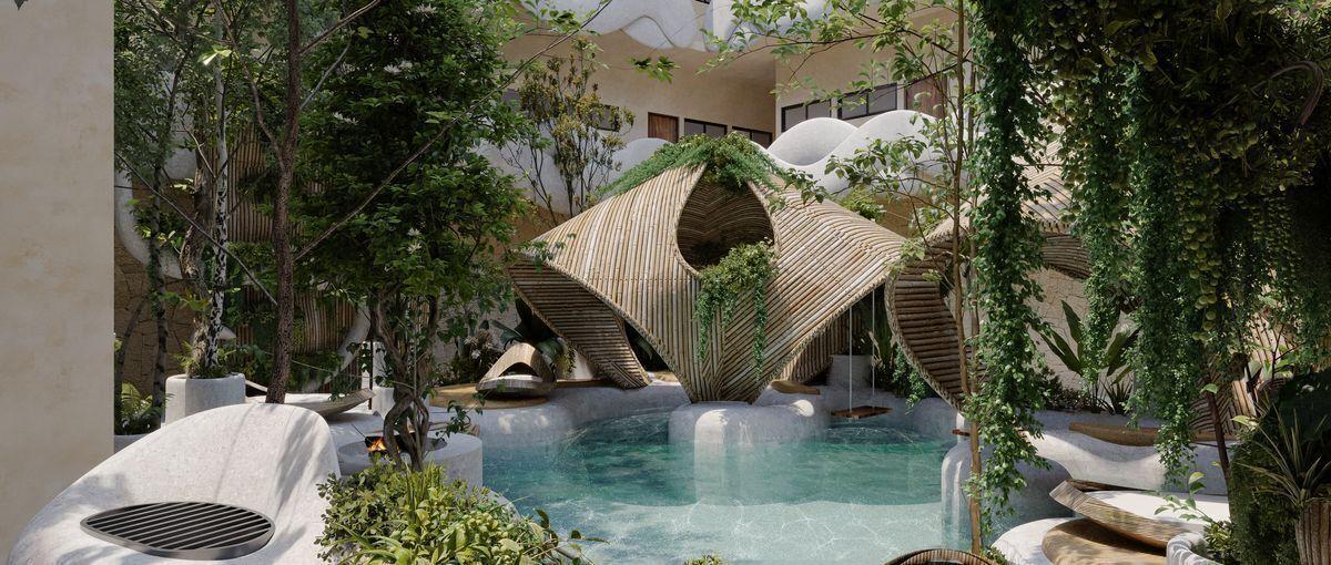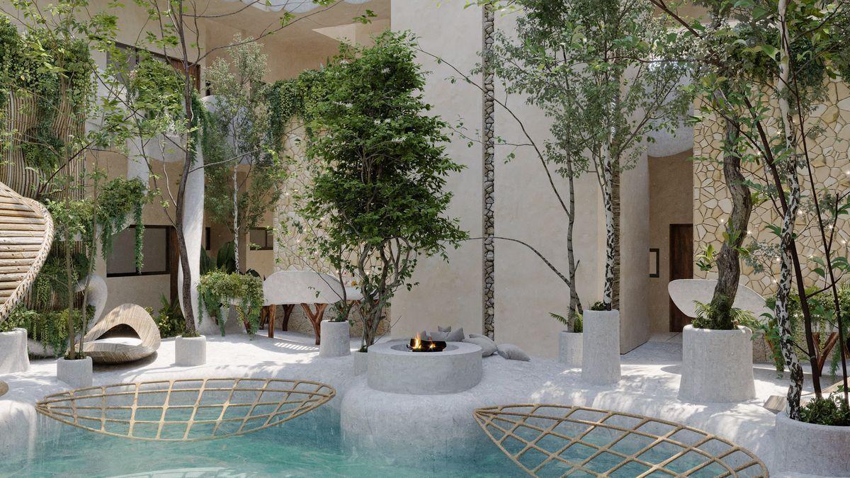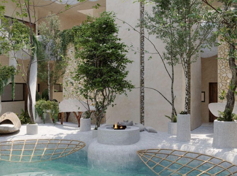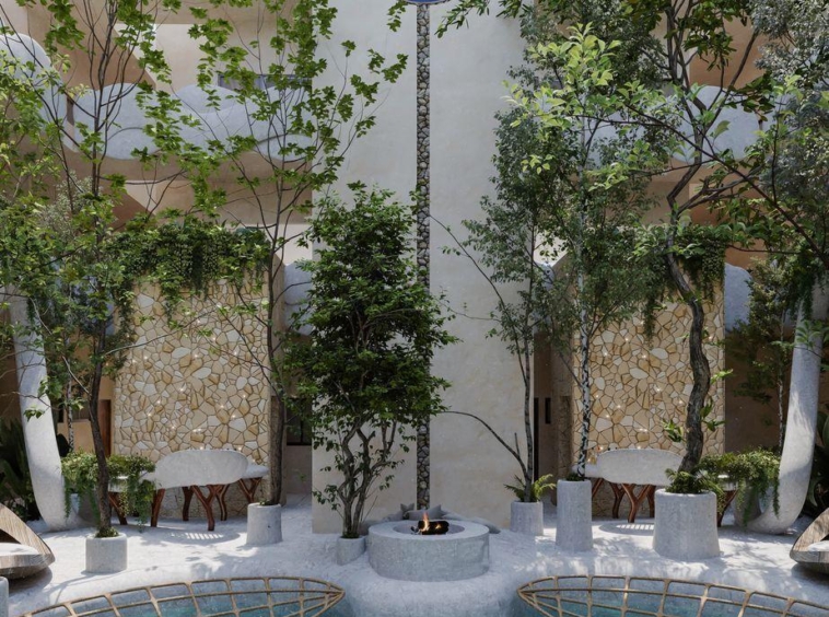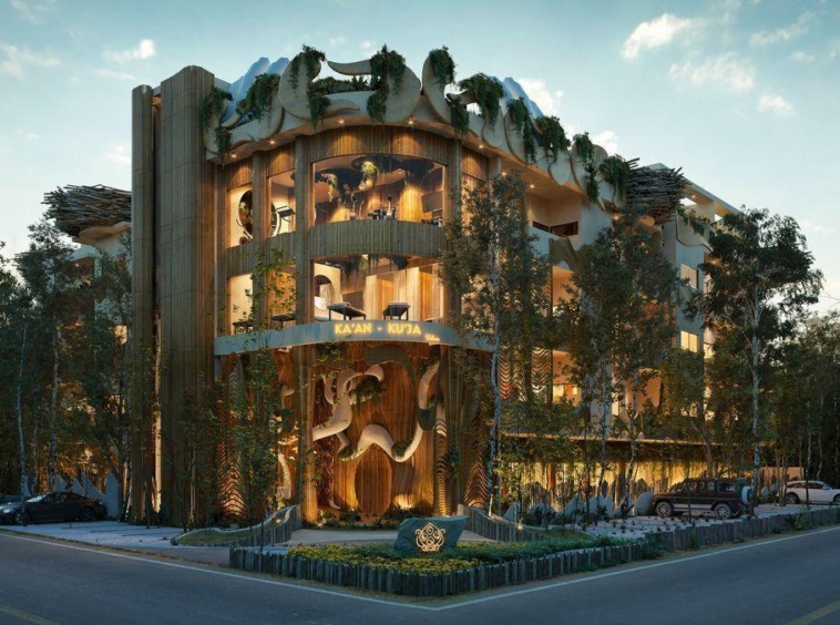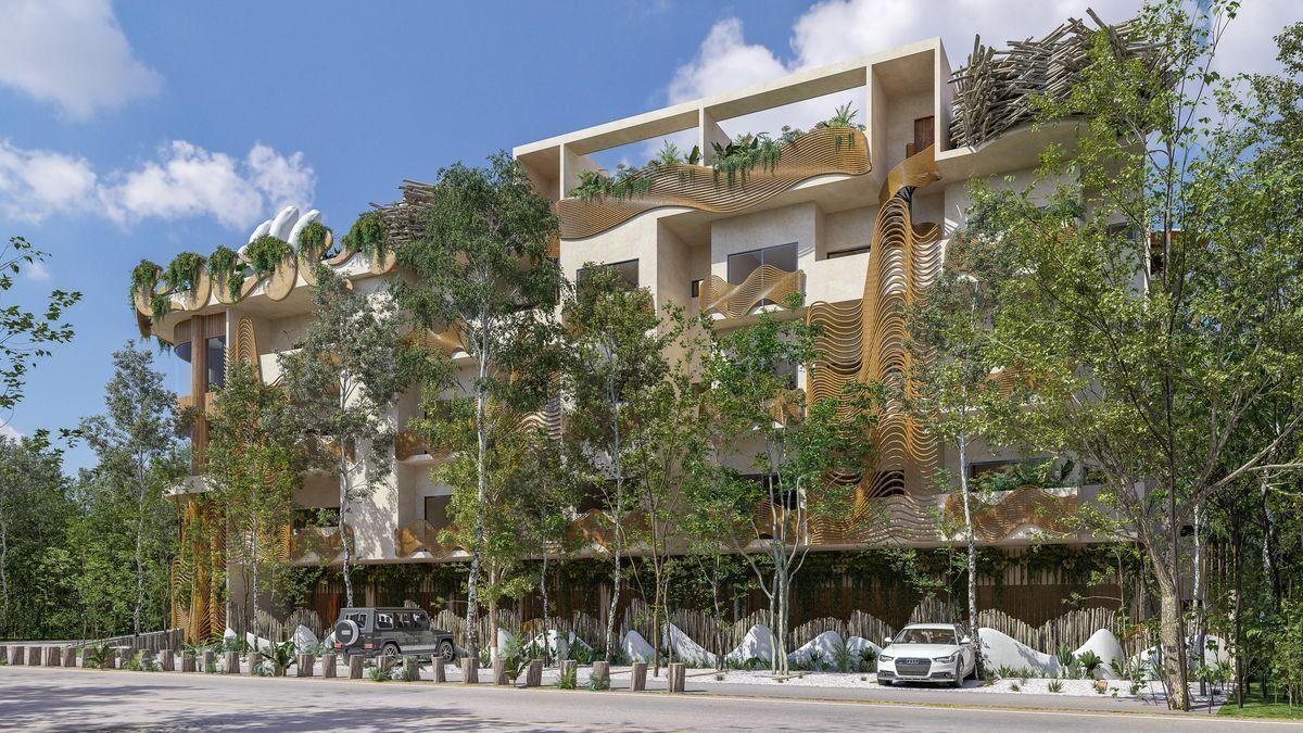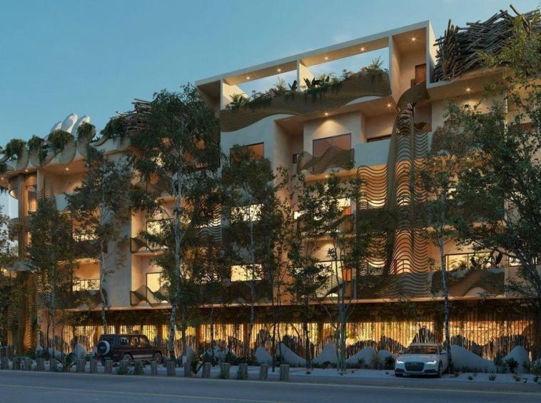 Venta departamentos 2 y 3 recamaras a 300 metros de zona hotelera de Tulum , donde se junta la avenida Kukulkan con la avenida que alberga a los más famosos clubs de playa y hoteles de TULUM .